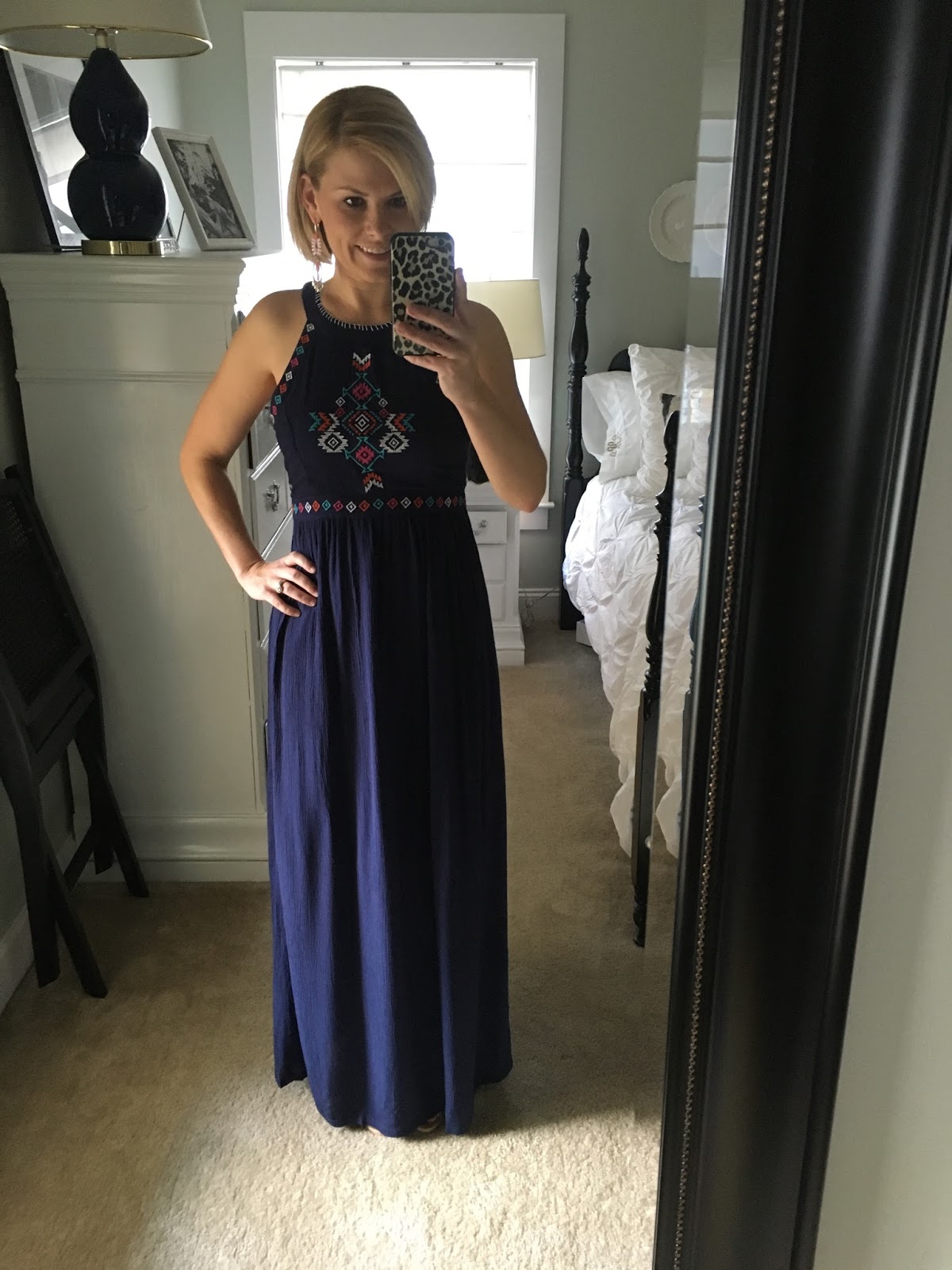 This dress was just re-stocked in all sizes in the white and there are still a few left in the navy as well. Such a cute, fun dress and with the $76.00 price tag you can’t beat it! Runs tts and is the perfect length for 5’6 and under! For reference, I am wearing the xs and 4 inch heels.
