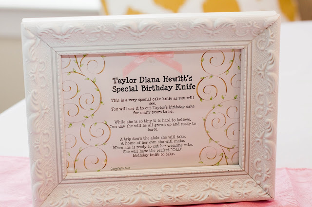 Looks like a perfect party! Love the birthday knife. If I ever have a little girl I am going to use your idea. Also, I am kinda obsessed with your pink bar cart. Where did you find it?