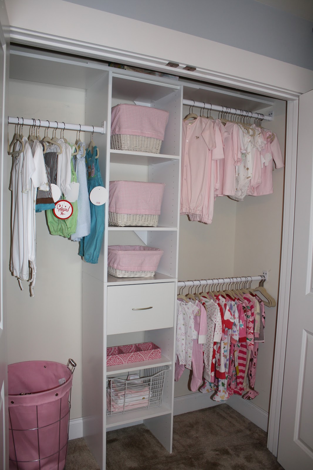 I could not be more pleased with how my little ladies closet turned out! The pictures really don’t do it justice, my husband rocks! Now if I can convince him to do ours and the laundry room 🙂