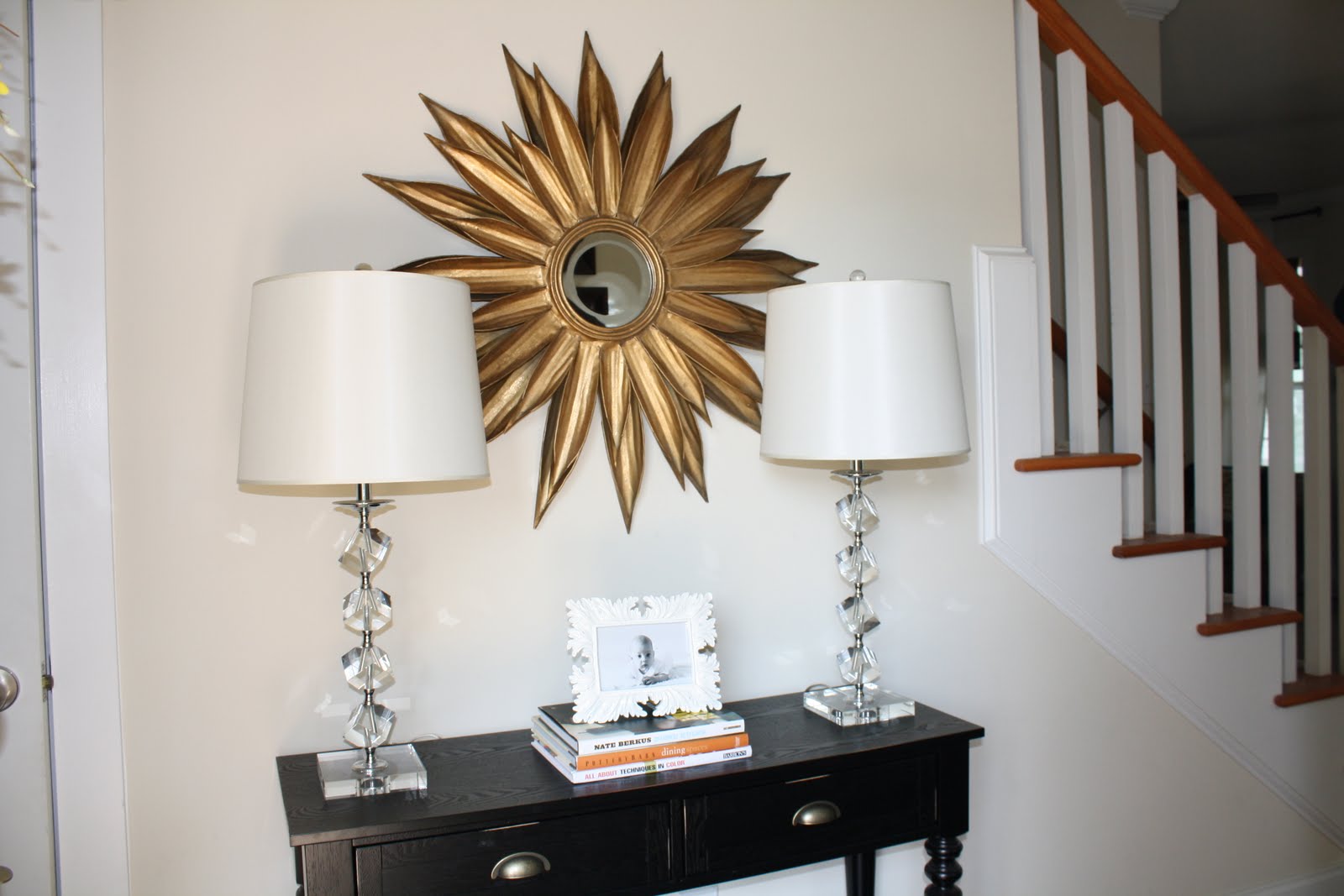 oh, I changed my mind. Mirror needs to go. I'll just happily take it off your hands next time I'm in town. I won't even charge you for this service. I definitely have NOT been talking about wanting a god starburst mirror for my entryway 🙂