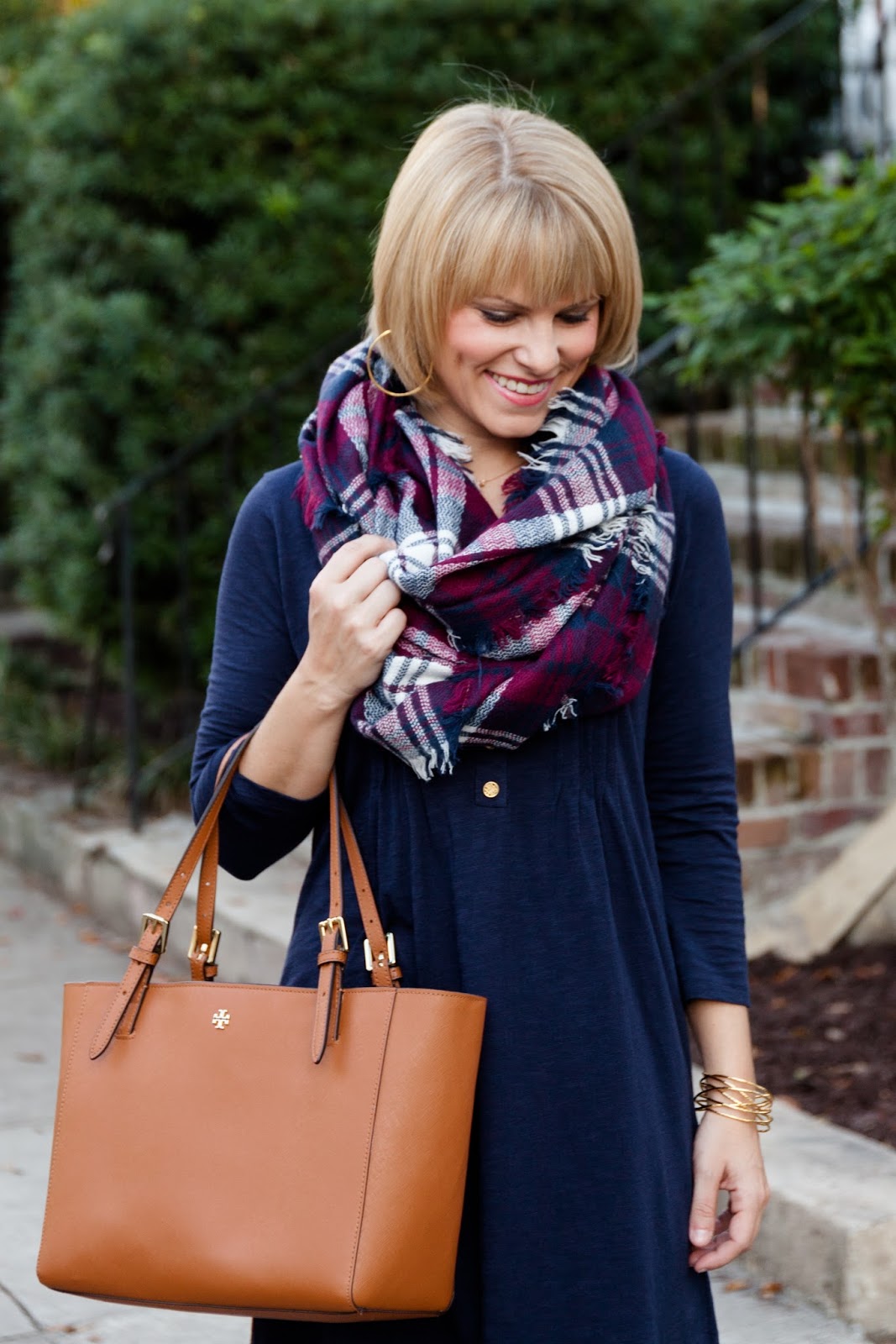 I love an easy toss-on dress, especially one that can be layered to create different looks for fall. When it gets even cooler outside, this one will be perfect with tights or leggings. And y’al, these boots…they are even prettier in person. The low heel makes them perfect to wear all day long.