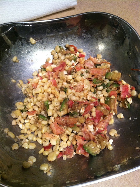 On Saturday we had some friends come over for dinner. I was too busy talking and cooking to remember to snap one picture 🙁 I hate when I do that. Anywho Todd grilled up filet and I made The Pioneer Womans mushroom sauce. It was so, so good! We also had the corn salad that I blogged about earlier this summer. Natalie reassured me it was amazing, and believe me she was not lying! I know this picture looks a little gross, but it was after we had eaten and it had been sitting for a little while.