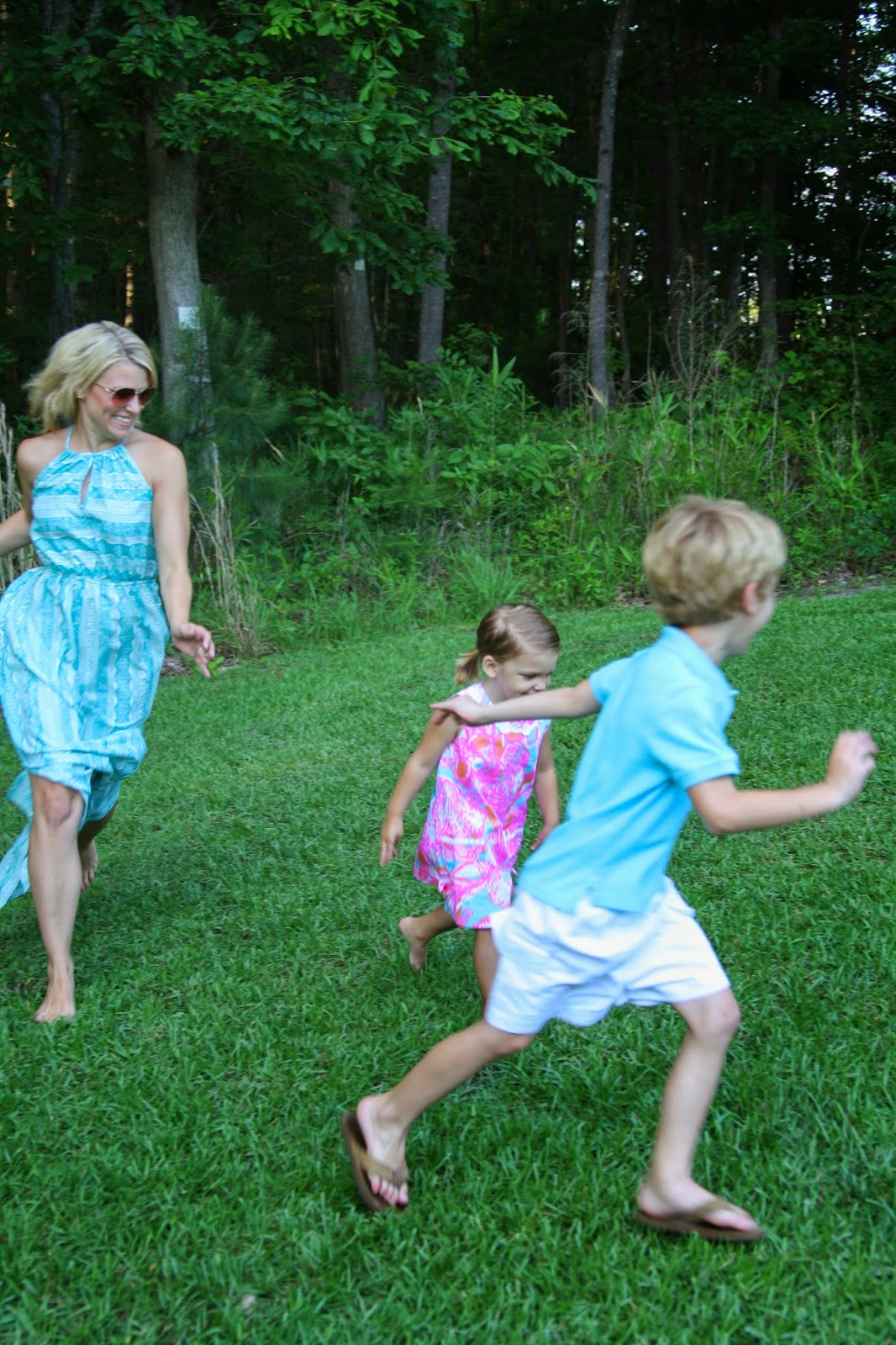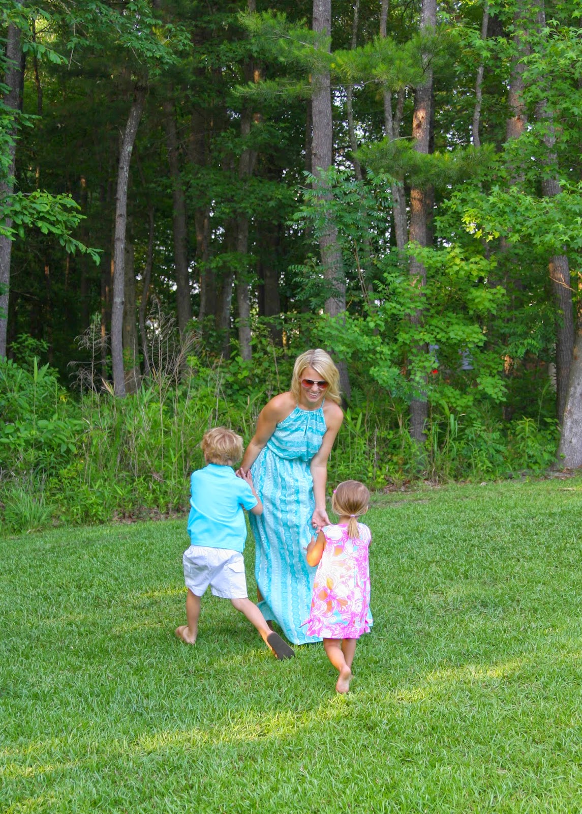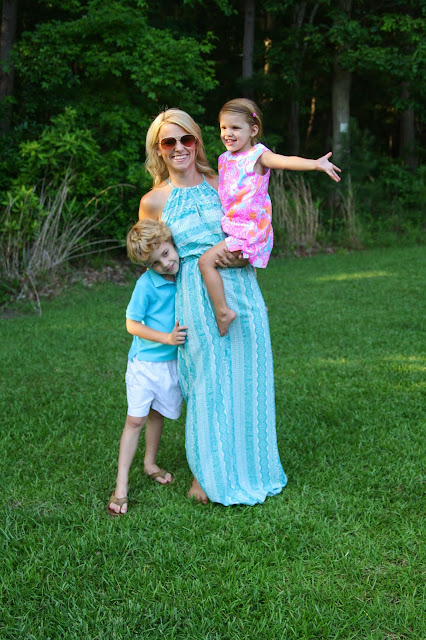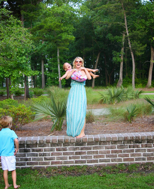 One of the reasons I love maxi dresses so much is because I feel I can really move in them and play with the kids. This one is really lightweight and the price is awesome at $44.00!! I love letting loose with our little goofballs, but man, did they wear me out playing chase. I was a much bigger fan of ring around the roses 😉