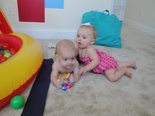 Carson loves his girlfriend Addison. He just smiles every time he gets to see her. I love watching them play together:) As much as 2 6months old can play ha!ha! My friend Candice I usually try to get together at least once a week, and spend some mommy time together. It is so nice to have Candice to talk to about everything especially since Addison and Carson are only 9 days apart funny I know.