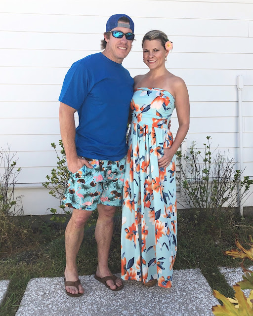 // Todd and I had a blast on Saturday at our neighborhood supper club luau! And I ended up wearing this $25 blue strapless maxi from Friday’s post.