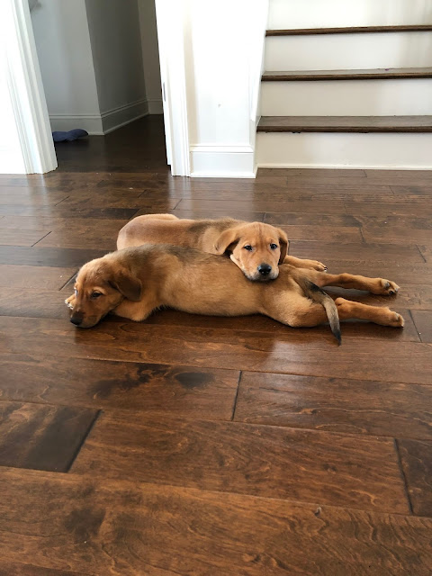 // I am sure a lot of you have already seen on Instastories, but for those of you who don’t use that or who may have missed my stories, meet the new members of our family Jorge and Dansby. They are 10 week old German Shepherd / Lab mix and these two brothers may just be the cutest puppies I have ever seen. As you can tell by the pictures below, we are already very much in love!!