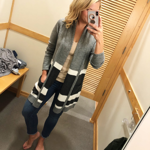 // Loft is currently having a 30% off sale on all jackets, cardigans, wraps, plus, all jeans and pants are marked down to $39.50. I was able to pop in there last week and try a few of them on, and I must say, Loft is already killing it for fall!