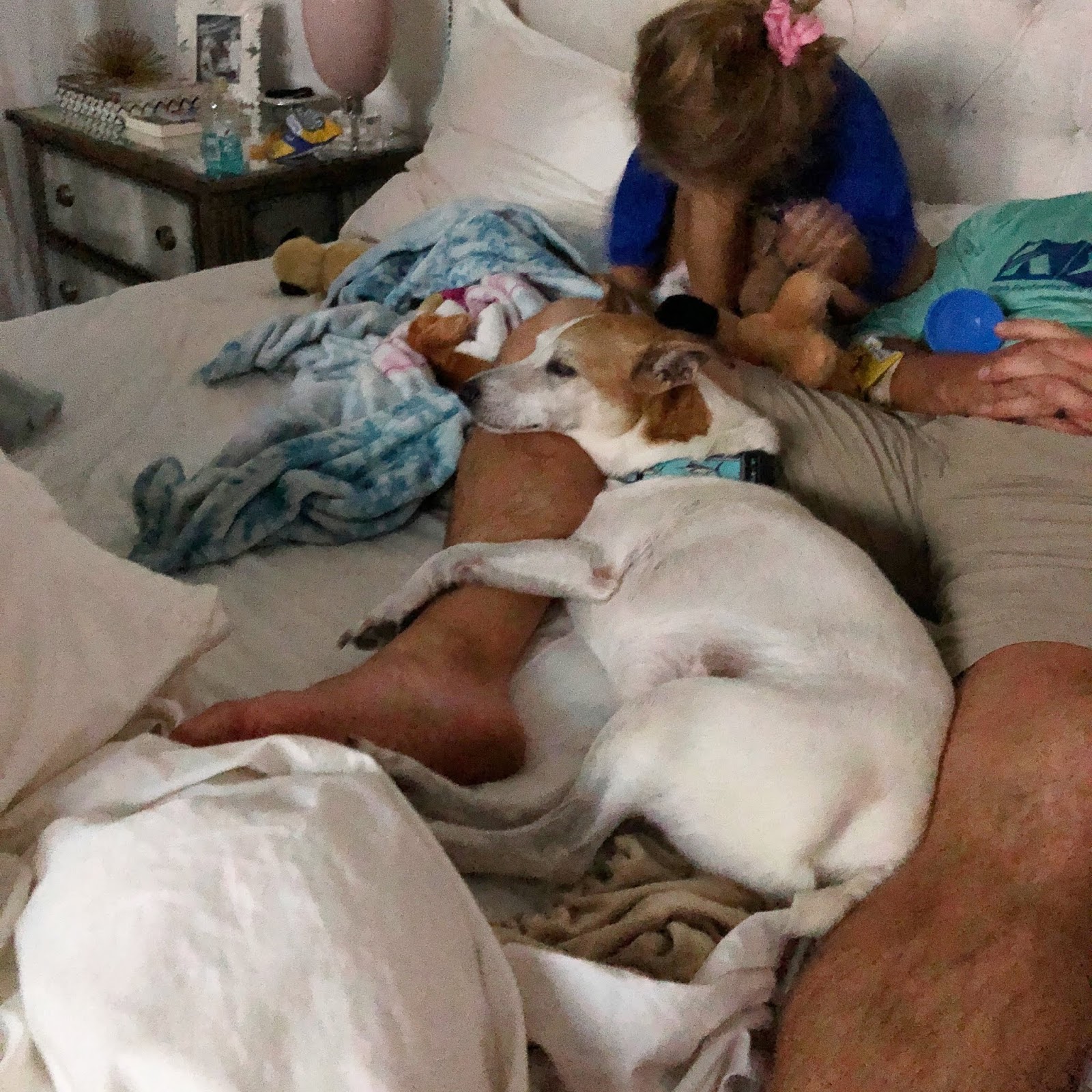We ended the night all snuggled up in our bed with a movie. As you can see in this photo below, about halfway through the movie, Rocky and Todd were the only ones actually relaxed and watching:)