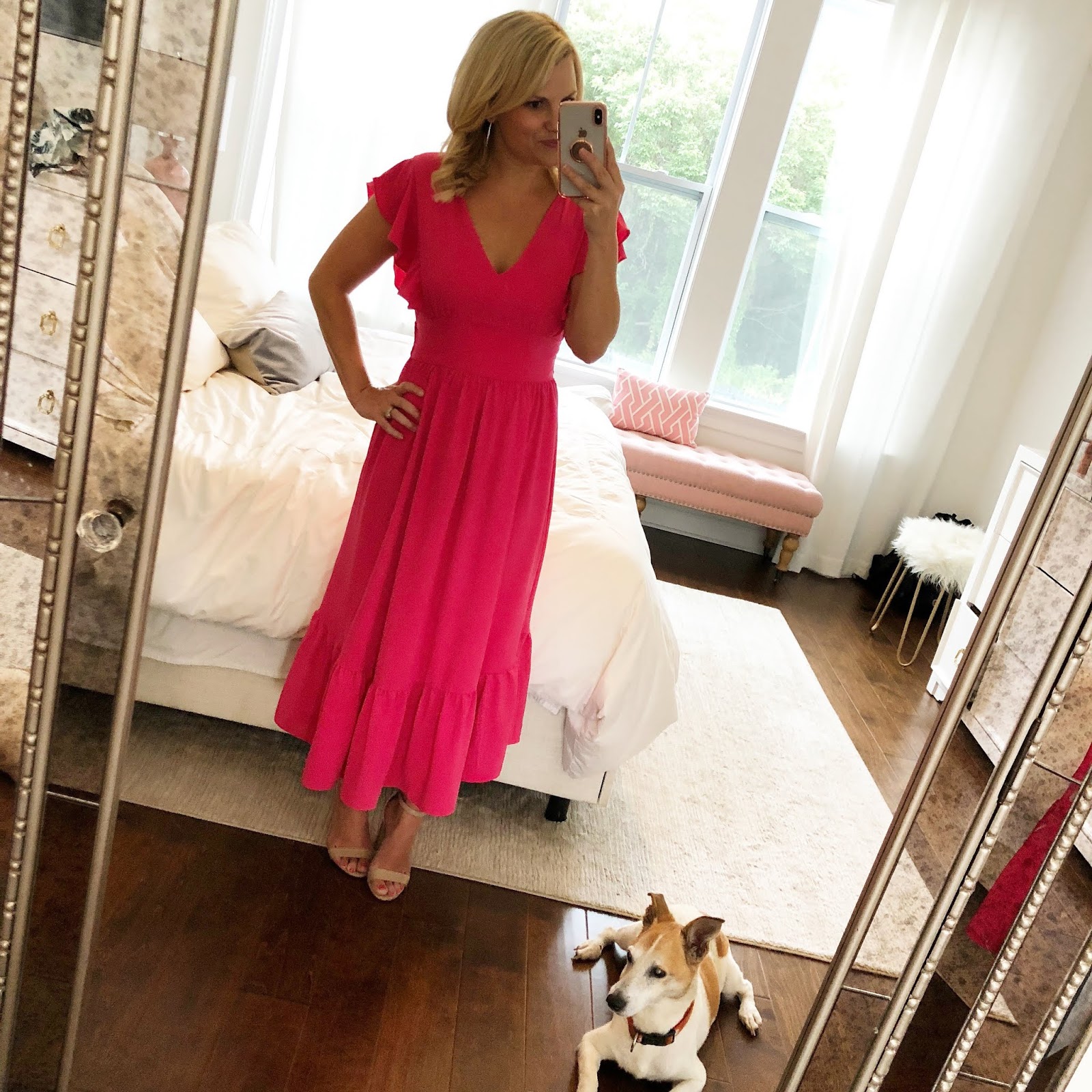 Ruffle High-Waist Midi // Earrings // Sandals (on sale)