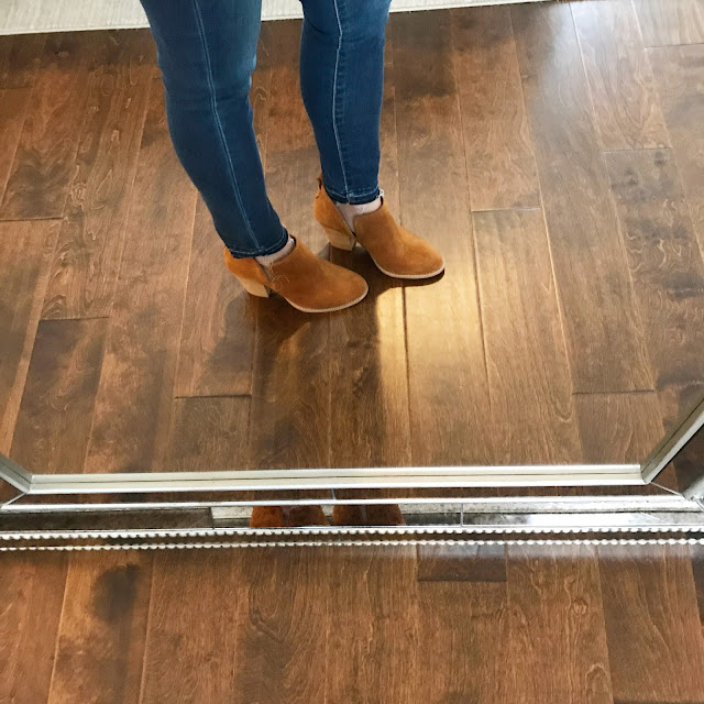 Cut-out V-Neck Sweater (50% off) // Jeans (only $64) // Booties