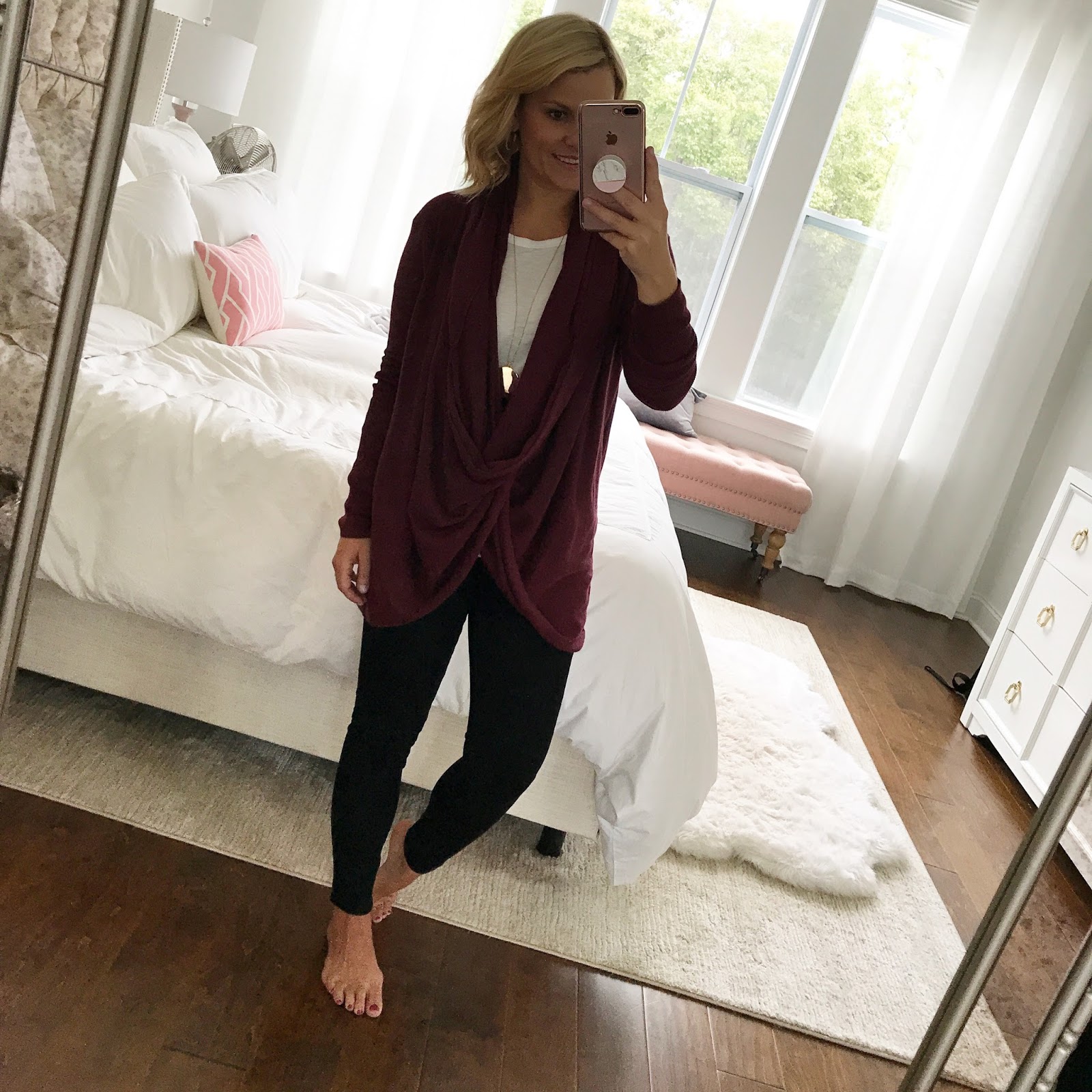 // If there is one cardigan that you guys need in your closet this fall and winter it is this one. It’s so soft and cozy, and it can be worn two different ways. It also comes in three different colors. It runs big, and for reference, I’m wearing the xs.