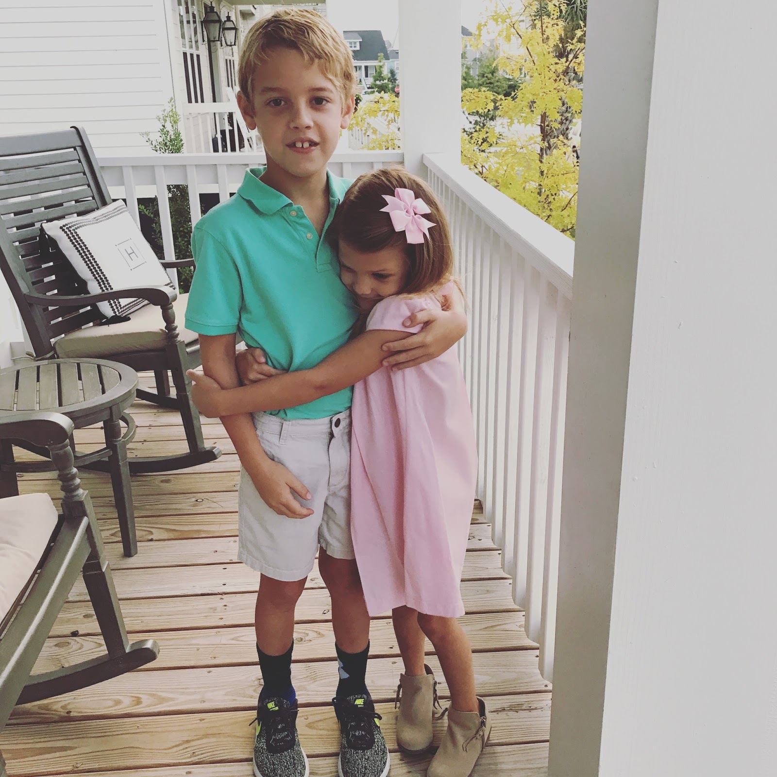 // This past Friday the kids had school pictures and I snapped this before they left that morning. I love how much this girl loves her big brother!