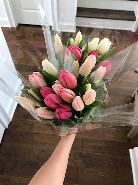 // Earlier this week, Natalie sent me the sweetest card and two dozen tulips. Aren’t they gorgeous!? You see, what you may not know is that Natalie and I talk at least two times a day on the phone, and we never make it a week without seeing each other. That being said, being that I’ve been down and out these last two weeks, I’ve been missing my girl like crazy! So it meant the world to me getting her card and these flowers at my doorstep.