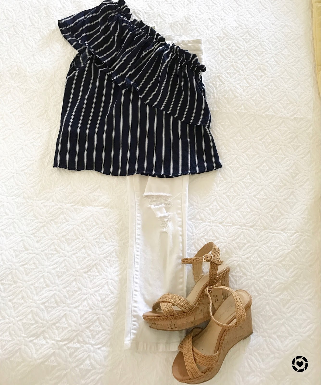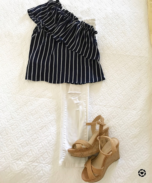 One Shoulder Ruffle Top (only $35) // Jeans (only $42) // Wedges
