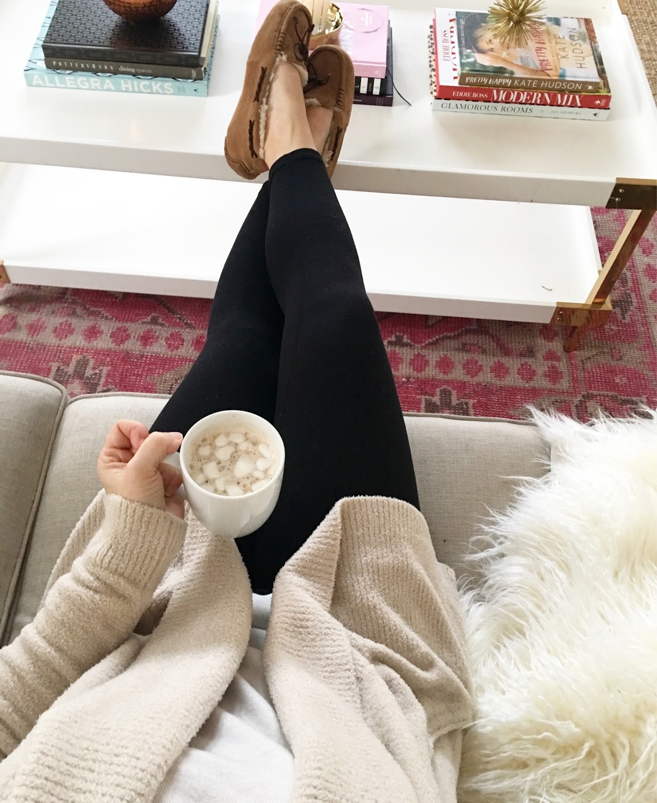Circle Cardigan // V-Neck Sweater // Leggings // Ugg Slippers also here