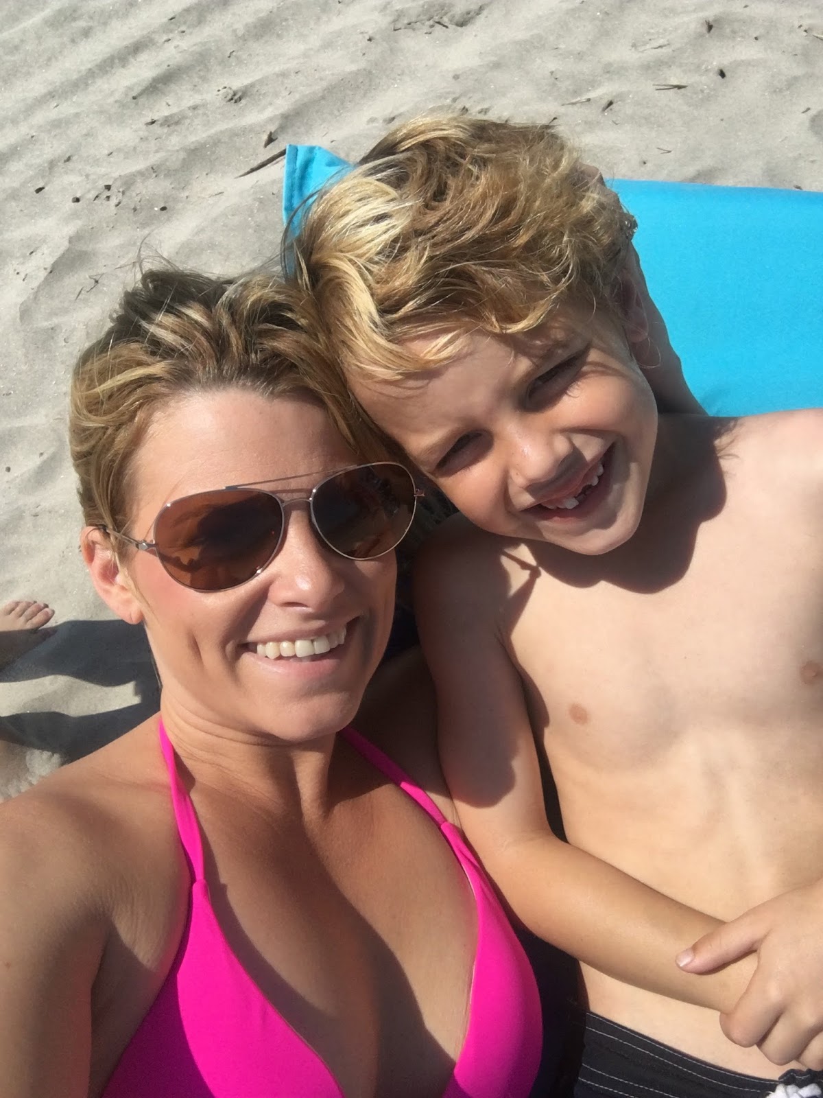 Me and my little man enjoying some beach snuggles and showing off his newly lost front tooth!!