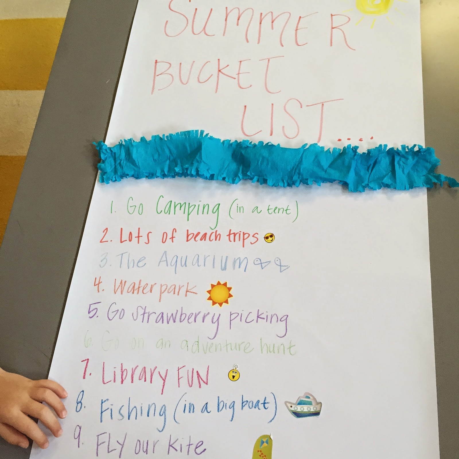 A few weeks back I suggested to him that we make a summer bucket list. After I explained to him what this was, he was on board all the way!