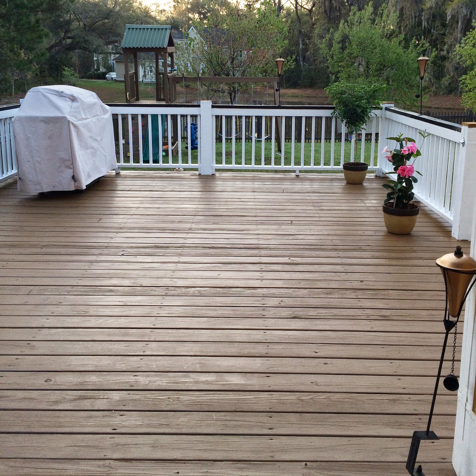 // With it being spring break and all, Todd decided to take the day off and spend it with us!! I love when we get daddy home for an extra day! I spent the entire Saturday and Sunday sanding and painting the deck. I am happy to report that I did it all by myself, and I must say, it looks pretty darn good! I had someone come out and give us a quote to do it for us, and I almost fell out when they told me the price!! I did it before all on my own immediately after we built the deck, so I knew I could do it again!