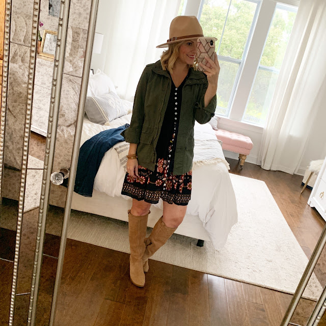 And here it is paired with my favorite military jacket.  I was very happy it was cool enough to toss on a jacket Saturday evening!