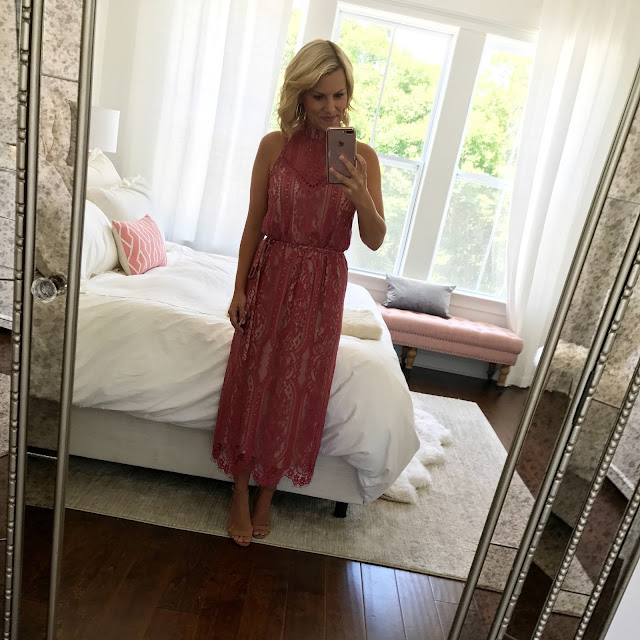 // This past weekend we took a quick trip to our hometown for Todd’s 20 year high school reunion. Unfortunately I didn’t pull my phone out and get any pictures. I used to be really good at taking pictures when we went places, but lately I seem to forget to take any pictures. Either way, we had a great time, and I was super excited to wear my dress that I picked up from the Nordstrom Anniversary Sale!!