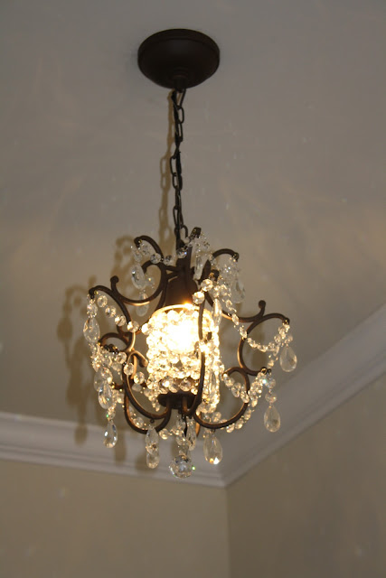 loving it! Seems so restrained because of it's size but it's all bling = the perfect chandelier!