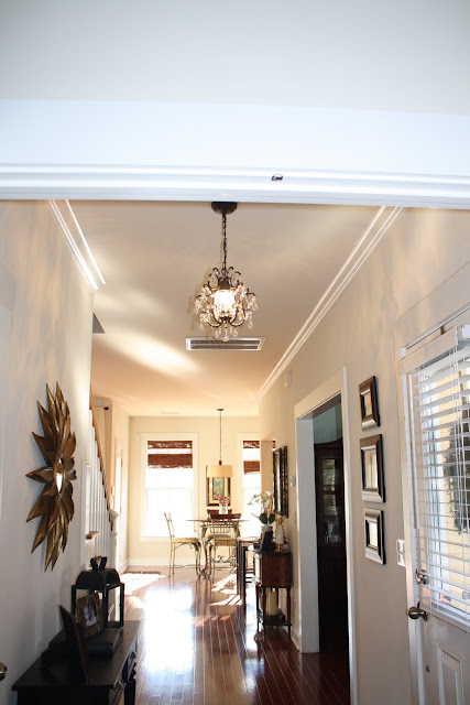Yay! The light made it! It looks AMAZING! And…again, I really like the gold mirror in the entry way – it even looks awesome from the side view.