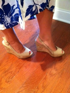 Speaking of comfortable, these wedges are just that! No really I wore them all last weekend for hours dancing the night away, and no sore feet. Plus I think they are equally as pretty as they are comfortable! (the color I have on are the sander)