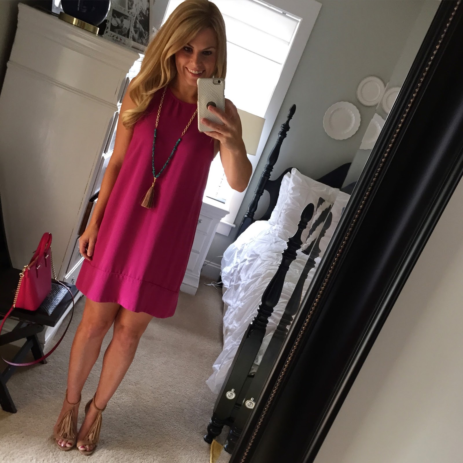 // This dress is an oldie, but such a goodie! It’s super easy to toss on, and can easily be dressed up or down! My friend over at Southern Sequins sent me this necklace last week, and I am loving it!! Christina has such beautiful, yet affordable jewelry in her shop. You can check all her pretties out here! Plus, she is offering you guys 10% off of your purchase with the code CAYCEE10!