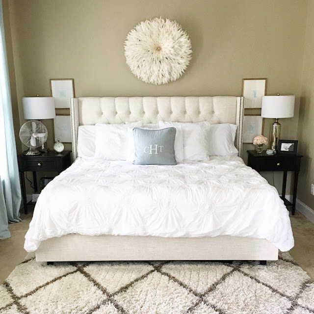 Your bed is gorgeous!! Do you happen to remember the name of the paint color on your walls? I really like it!