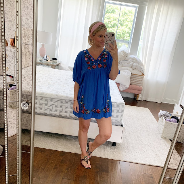 The kiddos and I hit the pool earlier this week, and I ended up washing and drying one of my favorite tunic dresses and it’s my new favorite pool cover-up! Seriously though, this tunic dress is such a good one, just make sure you hang it to dry instead of tossing it in the dryer.