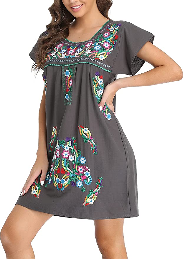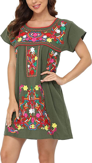 // This is the cutest Boho Mexican dress ever! And it comes in 31 colors and is only $34!! And I am really liking these two darker colors for fall!