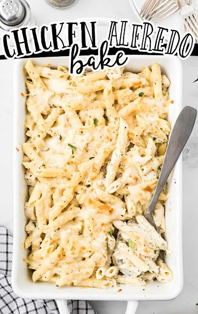 // I am planning on making this Chicken Alfredo bake tomorrow night for dinner! Carson is a huge fan of Chicken Alfredo and this one looks pretty easy and delicious!
