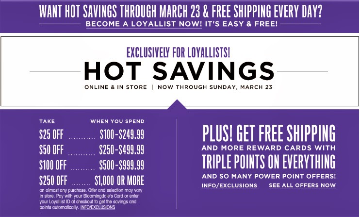 Bloomingdale’s is having a pretty good sale….below are the details. Perfect time to grab the