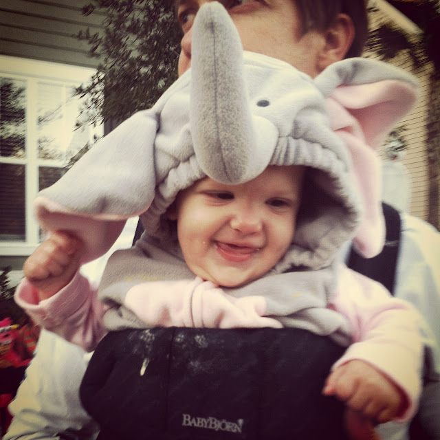 And this little elephant was such a trooper, she made it all night without a peep. Probably because her daddy was carrying her, she loves that man. What can I say, he has a way with women 🙂