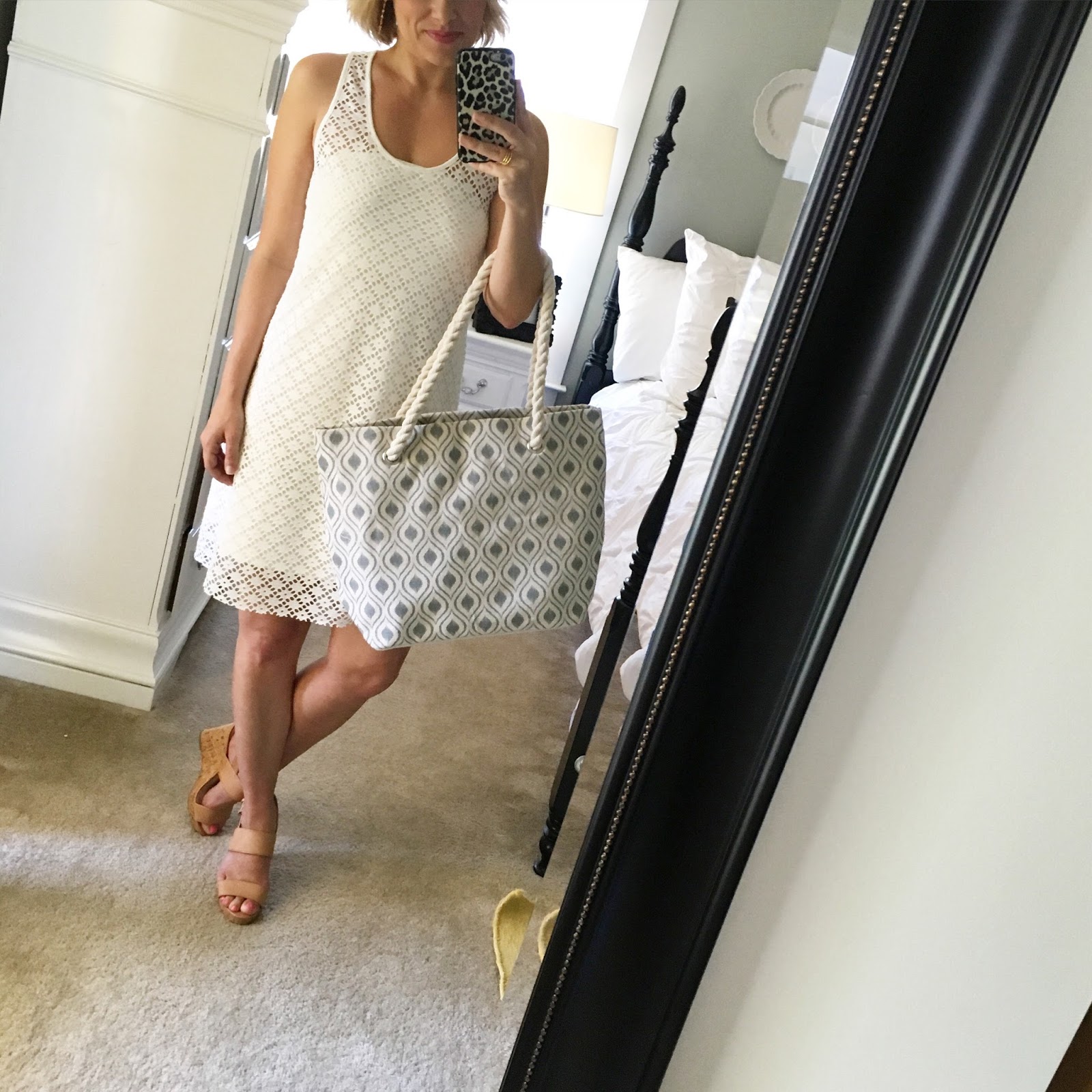 Newport Textured Dress  // Wedges // Tote (free with the purchase of any 5 pieces)