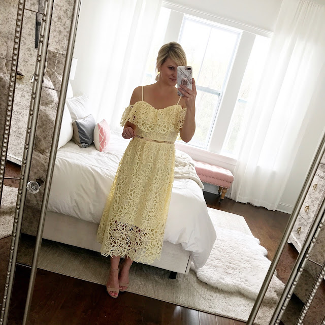 // I found the prettiest lace dress for spring and summer. It’s by the same brand that makes my favorite lace dress (found here) that I have in two colors. I will say that the sizing runs a little bit bigger in this style. My other dresses are smalls so I ordered a small in this one, but I think the xs may have been a better fit.