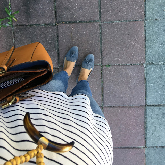 Stripe Top (similar here also) // Jeans (on sale) // Tassel Loafers // Tote // Necklace