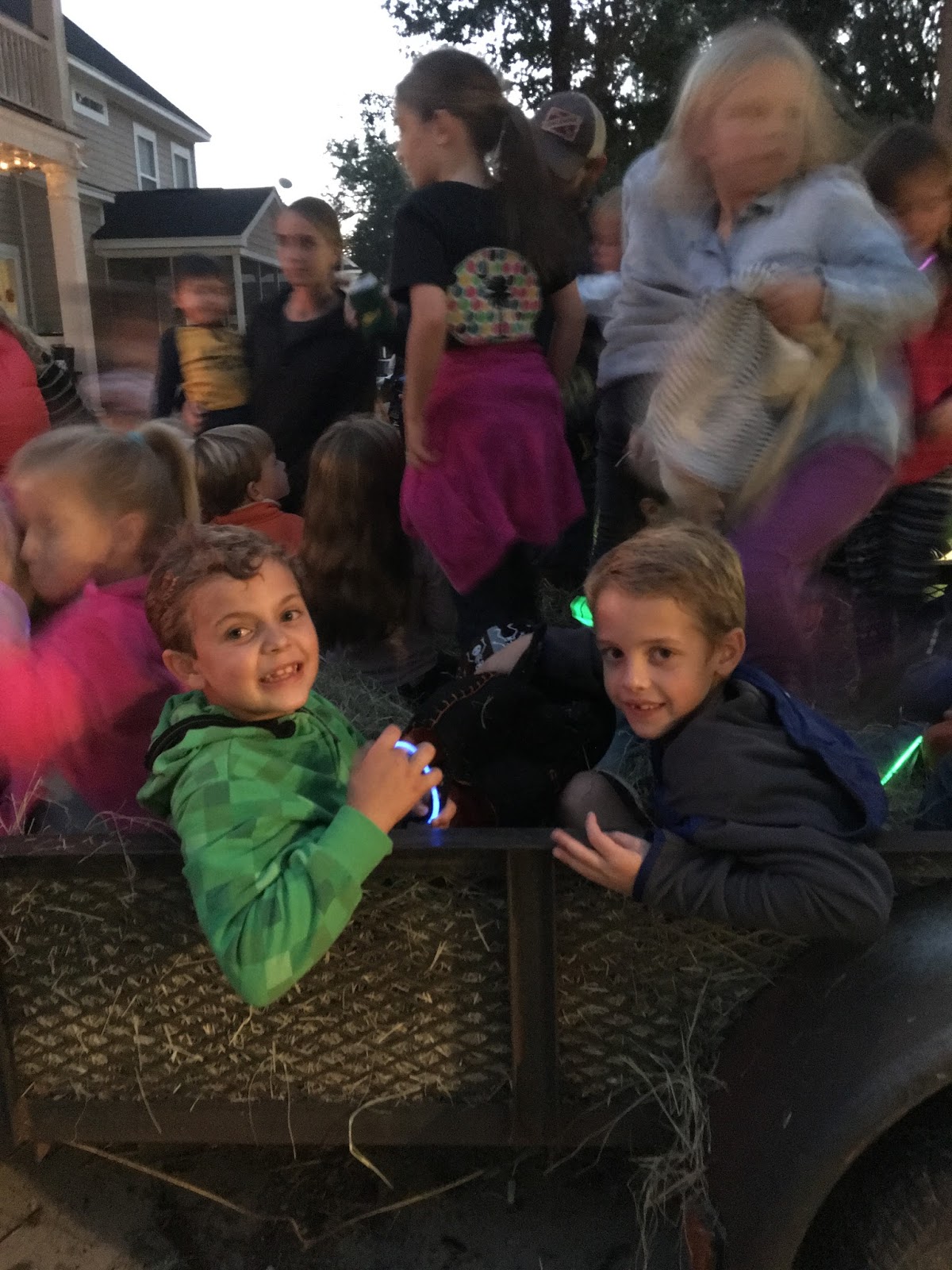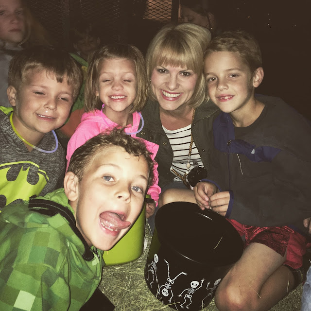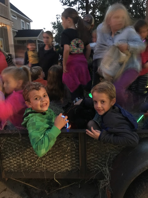 On Saturday evening, we had our neighborhood “haunted hayride”. And when I say haunted, all the dad’s dress up as something scary and they jump out along the ride to scare the kids. And y’all, this year was the best, because not one kid was scared at all. They were all quite bold actually, and they laughed and laughed trying to figure out which dad was dressed as what. It was so much fun seeing all the kids so happy and laughing together.