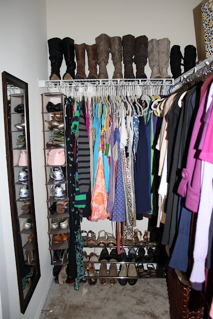 Well you know organizing closets and pantries, and cleaning out every draw in my house! Yes seriously people that is what I have been doing! I must say, it feels amazing to have it done! It was totally random the other day I just got this itch to reorganize everything. So when Carson went to Miss Lu Lu’s house this week, that is what I did. Having two days to myself is quite amazing may I add, and Carson is doing great, he actually asked me today to go see Miss Lu Lu 🙂 So here it is ladies, the newly organized spaces! The quality of these pictures suck to say the least, but taking a good picture of a closet is hard!!! Promise it looks much better in person!