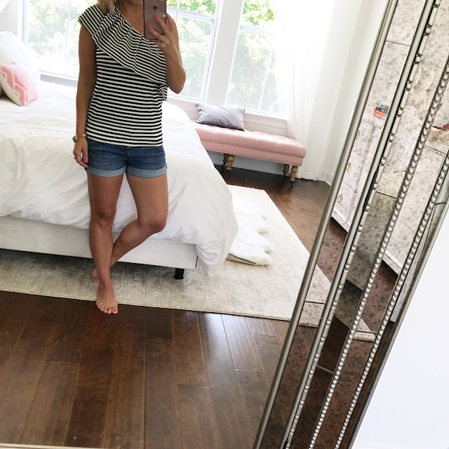 One Shoulder Top // Shorts // Wedges // Sunglasses