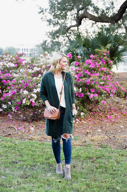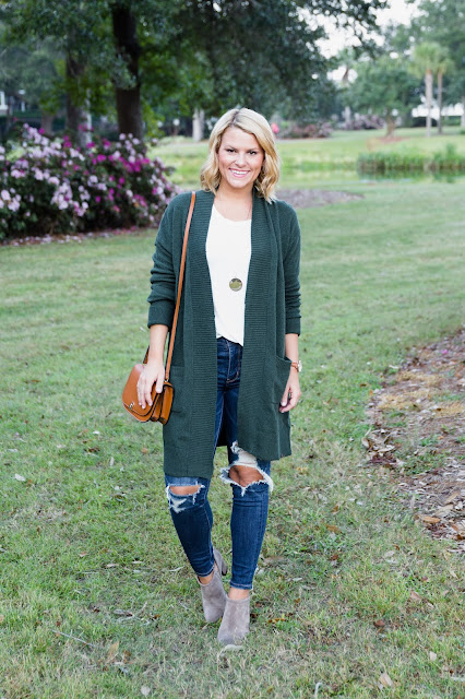 If you’ve been reading my blog for a while then you probably know I love a good pair of ripped jeans and an oversized cardigan for fall. I have this cardigan in three other colors because it’s just that good. And this was the first time in maybe 13 years since I’ve tried on jeans from American Eagle, but I noticed they had shorter lengths and their prices were great, so I thought what the heck, and gave it a shot!