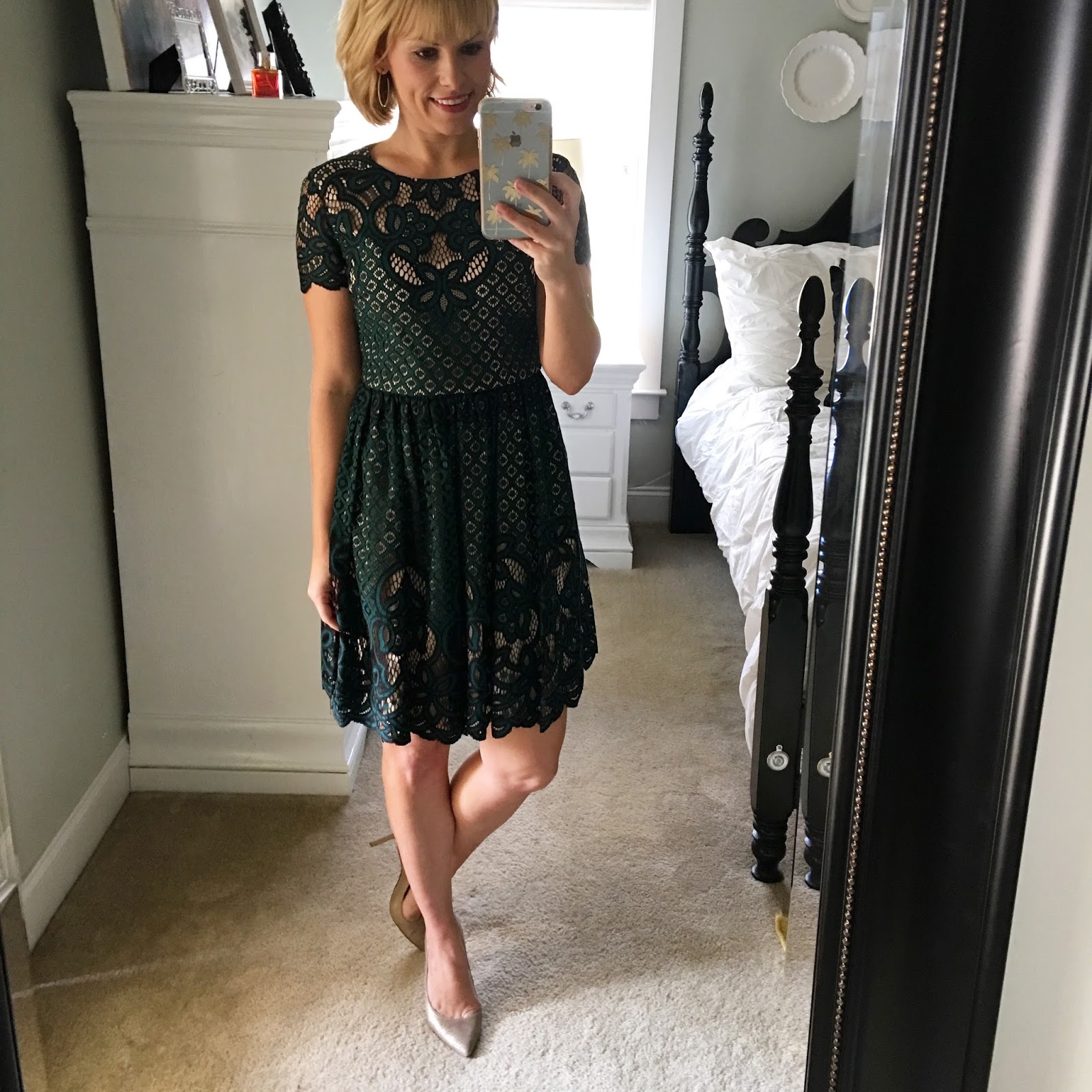 Flare Lace Dress // Earrings // Gold Pumps (run tts and I am wearing my normal 6.5)
