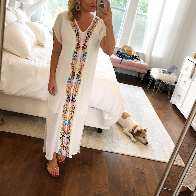 Bohemian Tunic Dress // Earrings // Similar Sandals