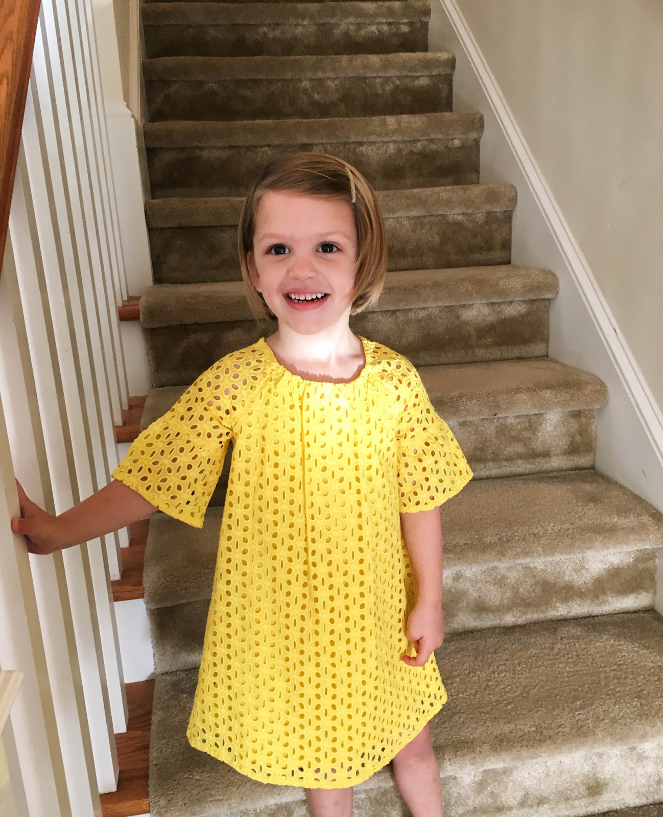 Her hair looks adorable! My four year old has that cut and it is the best – especially in the summer! It dries fast, no long stringy wet hair at the beach and it always looks chic! Just like your new hair cut!