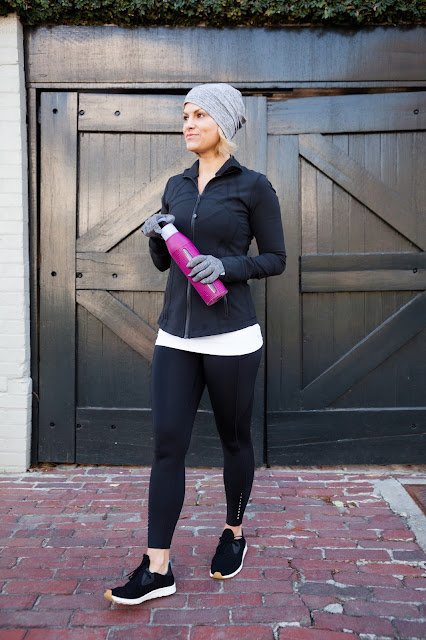 Define Jacket // Deep Breath Tank // Fast and Free 7/8 Tight // Top Knot Toque // Run with me gloves // H20m water bottle