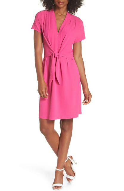 I am such a huge fan of this color pink in the summer, and it looks so good with a tan. Not to mention, this dress would be perfect for work, a casual wedding, or just a date night. It also comes in regular and petite, and also in black and a beautiful blue color.