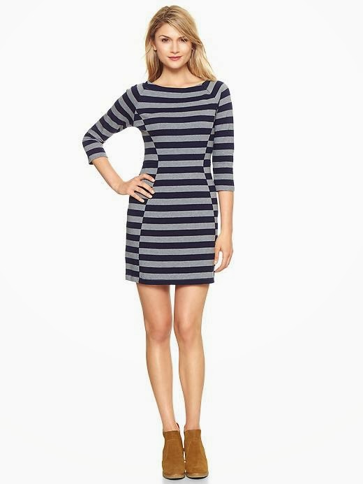 I just love the gray and navy, and the fact this dress comes in petite. I think it would look so cute with booties, or flats. Gap has really stepped it up this year!